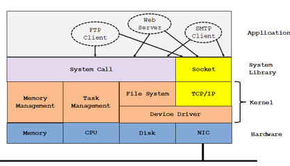 소켓 ( Socket )은 응용 계층이 하위 계층인 TCP/IP 계층의 역할을 몰라도 되도록 TCP/IP의 역할을 감추어주는 역할을 한다. ( 투명성 )