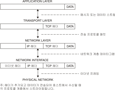 TCP/IP 혹은 internet protocol suite 의 계층 구조