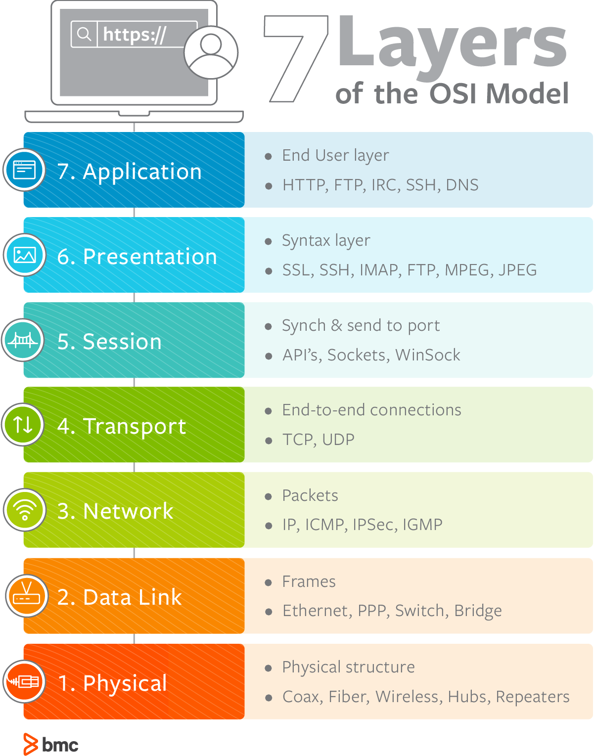 국제표준화기구(ISO) 에서는 OSI (Open System Intercon-nection, OSI) 라는 모델을 개발해, 컴퓨터 네트워크 프로토콜 디자인과 통신을 계층으로 나누어 설명하는 추상화를 제공한다.